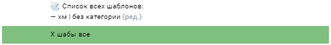 Если указать после названия шаблона через символ «|» (вертикальная черта) название категории, то шаблону будет присвоена категория (по сути нужна для удобства поиска шаблонов)