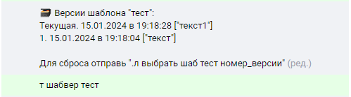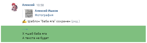 Шаблоны — это сохраненные картинки, текст, видео и т.п. Вызвать шаблон командой быстрее и проще, чем искать нужную картинку в сохрах во время «важных переговоров».