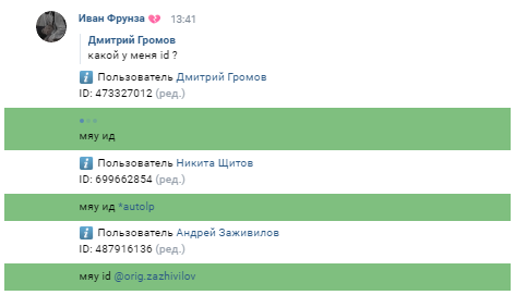 ID {пользователь} \ ответ на сообщение пользователя